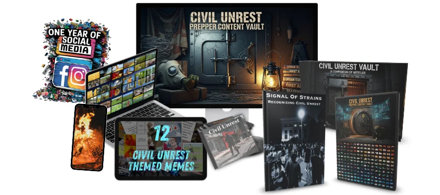 Click here to grab The Ultimate Civil Unrest Prepper Content Vault for just $9.00
