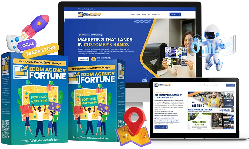 This model is a high-demand, low-competition niche. Most local businesses are overwhelmed by digital noise. A tangible, massive postcard that lands in every mailbox is a breath of fresh air. EDDM Agency Fortune gives you the polished, professional face—a Done-for-You WordPress Agency Website—to present this irresistible offer, instantly positioning you as the local expert who makes it happen. The system is designed for local consultants, freelancers, or absolute beginners who need a simple, repeatable, and lucrative side hustle that scales with every card you send out.